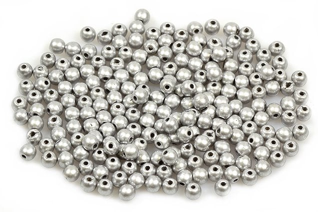 ラウンドドラックビーズ、シルバーマット(01700)、ガラス、チェコ共和国