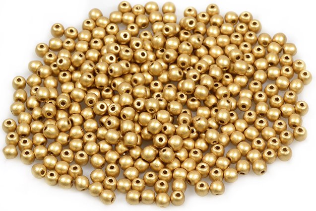 ラウンドドラックビーズ、アステカペールゴールド(01710)、ガラス、チェコ共和国