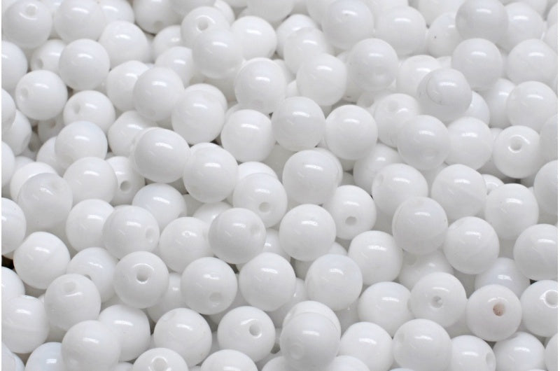 ラウンドドラックビーズ、ホワイト(02010)、ガラス、チェコ共和国