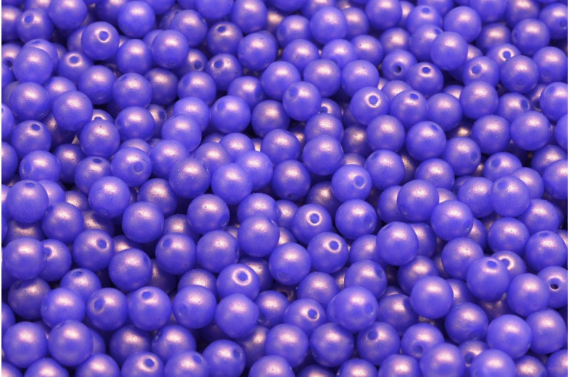 ラウンドドラックビーズ、ホワイトパープル(02010-24110)、ガラス、チェコ共和国