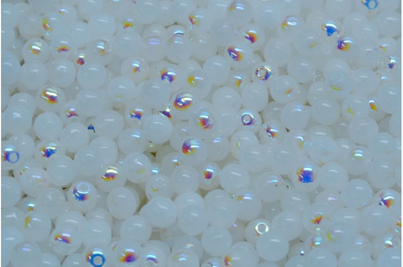 ラウンドドラックビーズ、ホワイトAb(02010-28701)、ガラス、チェコ共和国