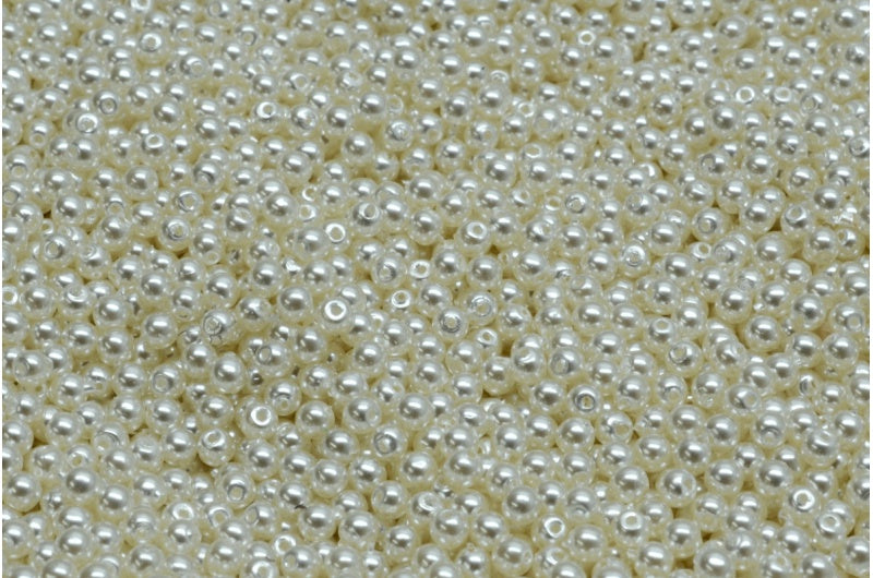 ラウンドドラックビーズ、ホワイトホワイトパール(02010-70402)、ガラス、チェコ共和国