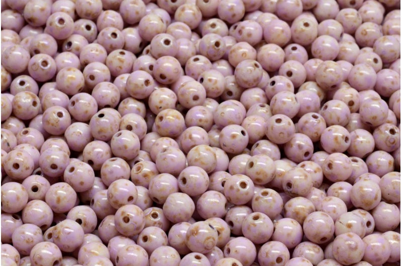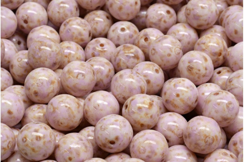 ラウンドドラックビーズ、ホワイトトラバーチンコールドパープルスポット(02010-86800-33305)、ガラス、チェコ共和国