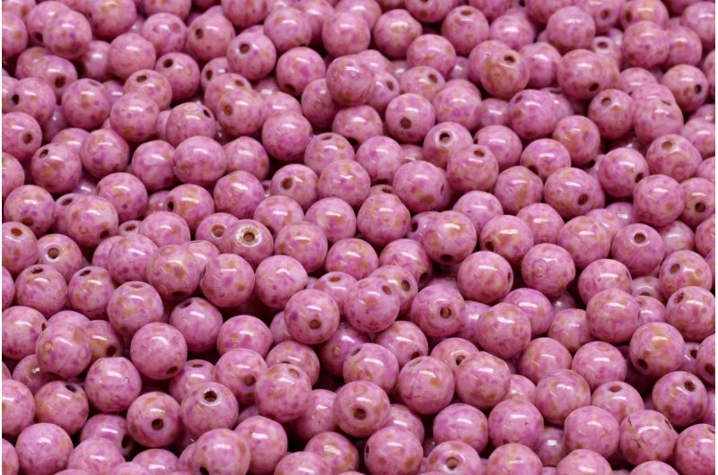 ラウンドドラックビーズ、ホワイトトラバーチンピンクスポット(02010-86800-33306)、ガラス、チェコ共和国