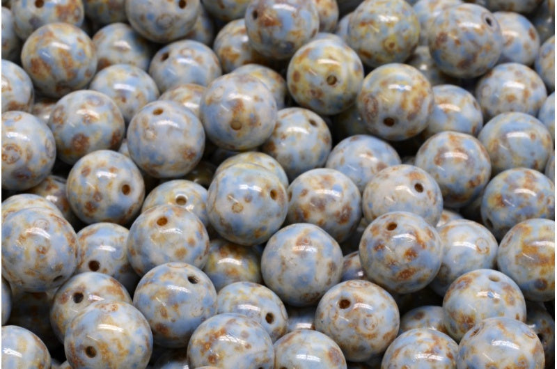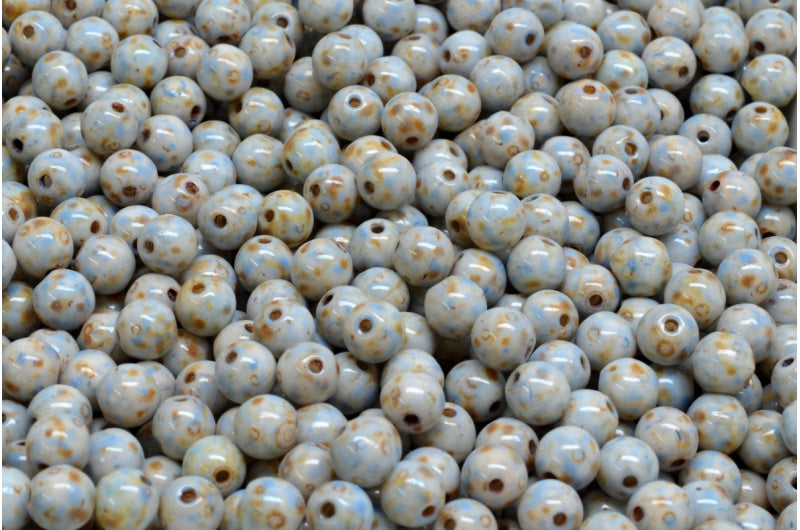 ラウンドドラックビーズ、ホワイトトラバーチンブルースポット(02010-86800-33308)、ガラス、チェコ共和国