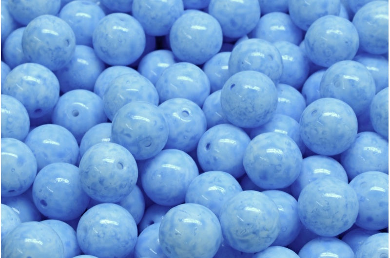 ラウンドドラックビーズ、ホワイトオパールブルースポット(02020-33308)、ガラス、チェコ共和国