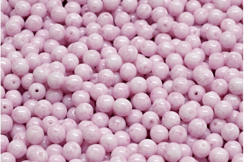 ラウンドドラックビーズ、ホワイトオパールライトフクシアピンク(02020-34306)、ガラス、チェコ共和国