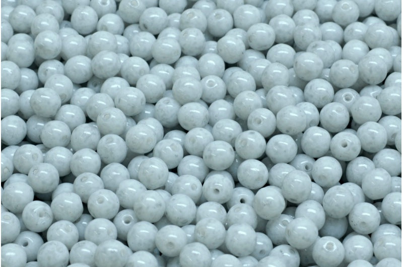 ラウンドドラックビーズ、ホワイトオパールライトグレー(02020-34311)、ガラス、チェコ共和国