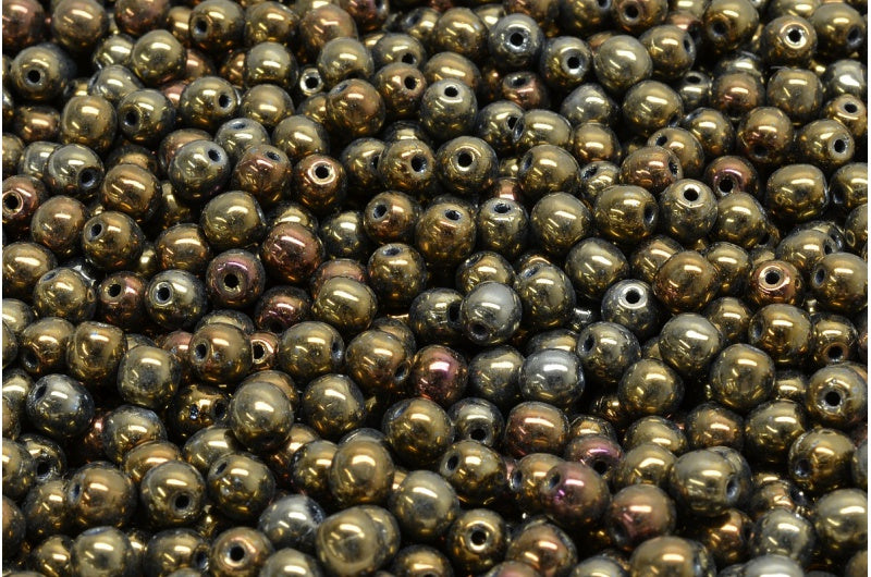 ラウンドドラックビーズ、ブラックブラウンアイリス(23980-21415)、ガラス、チェコ共和国