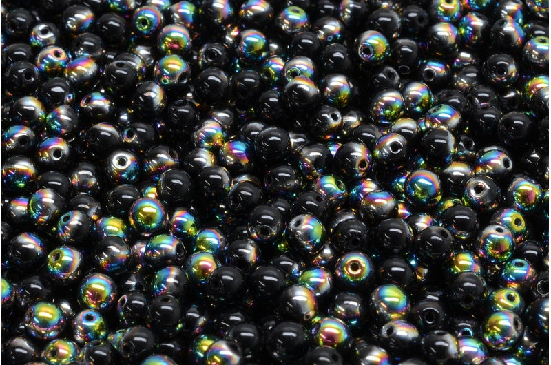 ラウンドドラックビーズ、ブラッククリスタルヴィトレイルミディアムコーティング(23980-28101)、ガラス、チェコ共和国