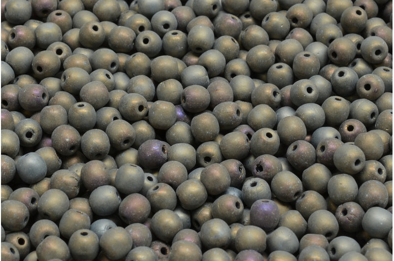 ラウンドドラックビーズ、ブラックマットブラウンアイリス(23980-84100-21415)、ガラス、チェコ共和国