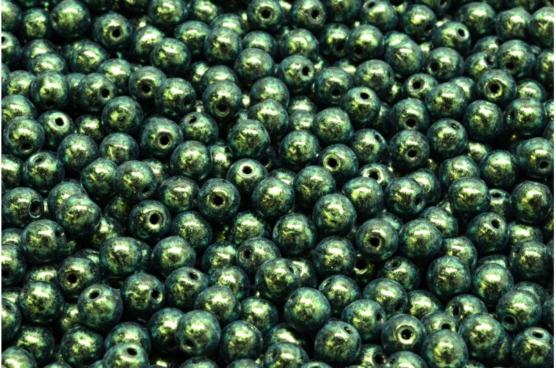 ラウンドドラックビーズ、ブラックグリーンイリディセント(23980-86922)、ガラス、チェコ共和国