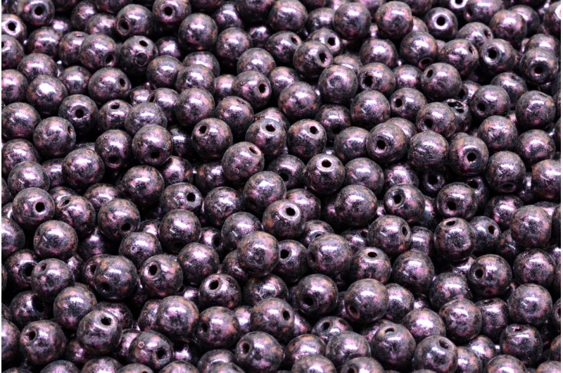 ラウンドドラックビーズ、黒赤虹彩(23980-86944)、ガラス、チェコ共和国