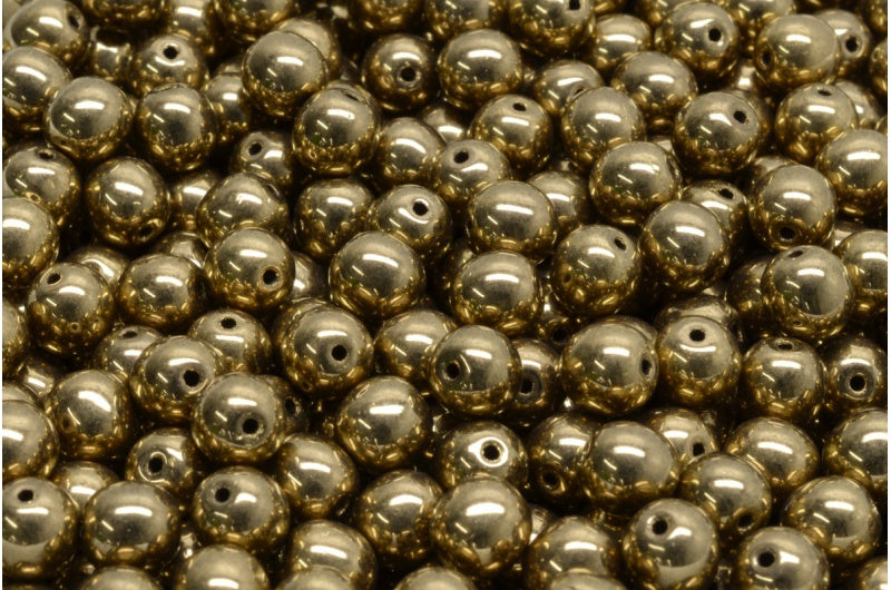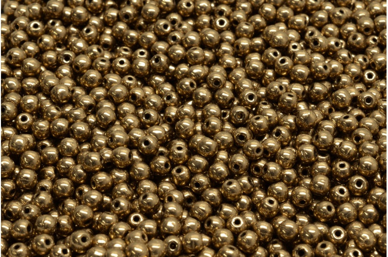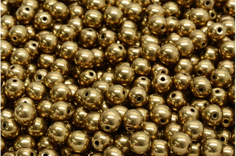 ラウンドドラックビーズ、ブラックブラス(23980-90215)、ガラス、チェコ共和国