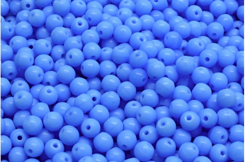 ラウンドドラックビーズ、不透明ブルー(33100)、ガラス、チェコ共和国