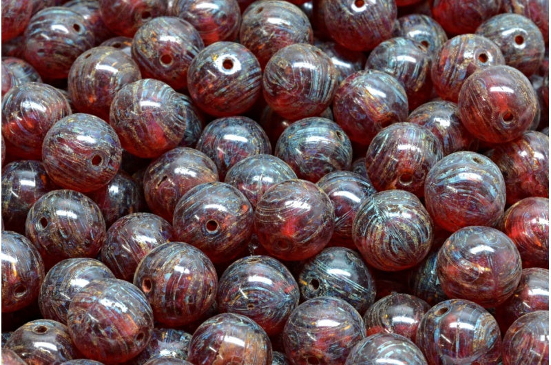 ラウンド Druck ビーズ、透明な赤いトラバーチン (70350-86800)、ガラス、チェコ共和国