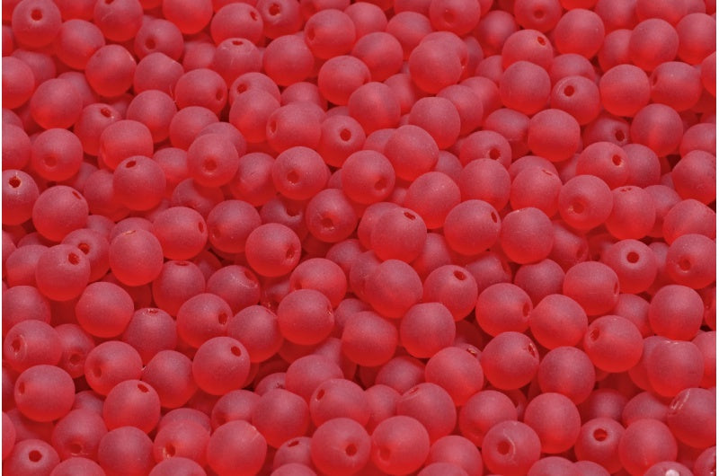 ラウンドドラックビーズ、ルビーレッドマット(90080-84100)、ガラス、チェコ共和国