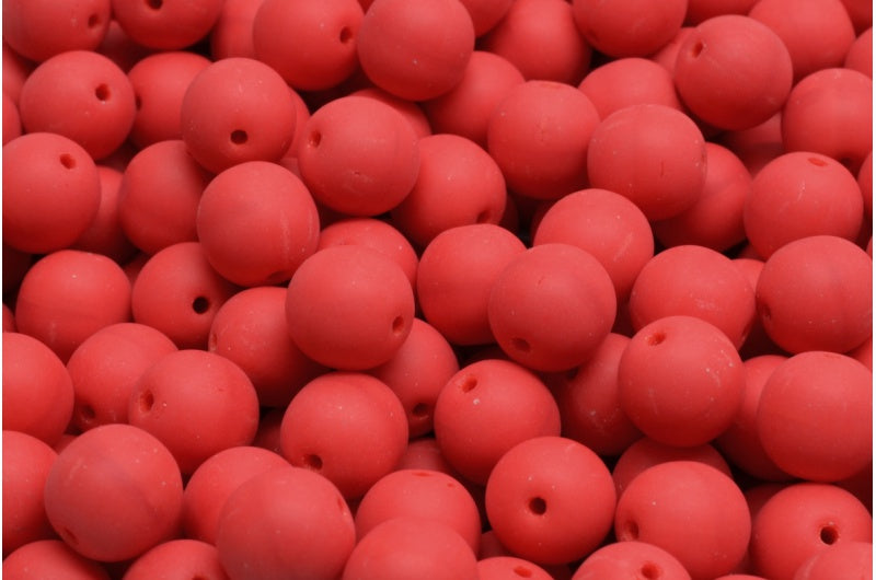 ラウンドドラックビーズ、不透明レッドマット(93200-84100)、ガラス、チェコ共和国
