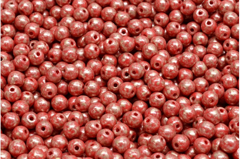 ラウンドドラックビーズ、不透明レッド 86710 (93200-86710)、ガラス、チェコ共和国