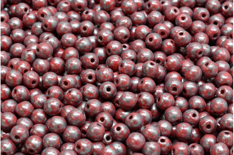 ラウンドドラックビーズ、不透明レッド 86790 (93200-86790)、ガラス、チェコ共和国