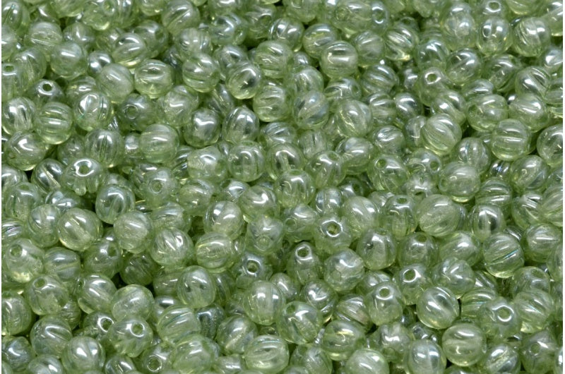 メロンビーズ、クリスタルラスターグリーンフルコーティング(00030-14457)、ガラス、チェコ共和国