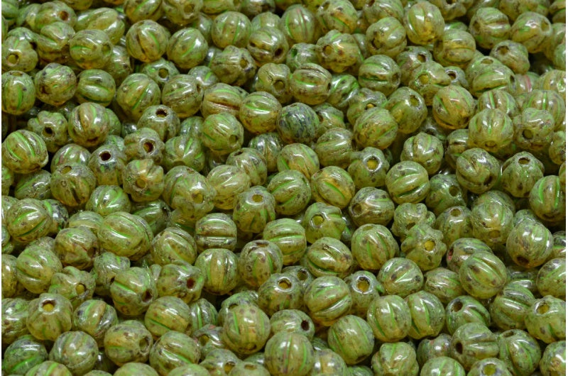 メロンビーズ、クリスタルトラバーチングリーンスポット(00030-86800-33311)、ガラス、チェコ共和国