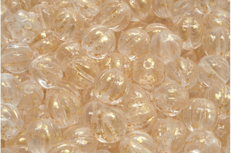 メロンビーズ、クリスタルゴールドスプラッシュ(00030-94401)、ガラス、チェコ共和国