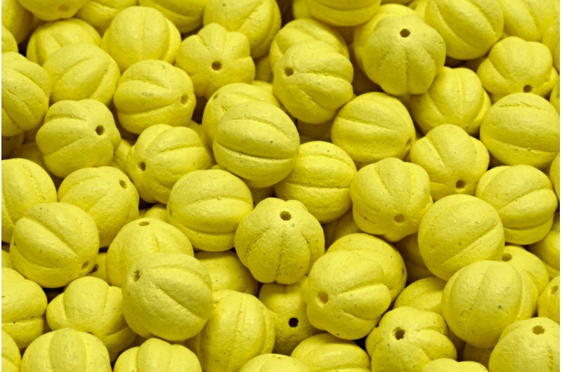 メロンビーズ、ホワイトブライトイエローマット(02010-22M01)、ガラス、チェコ共和国