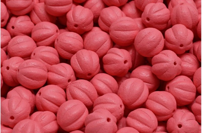メロンビーズ、ホワイトブライトレッドマット(02010-22M08)、ガラス、チェコ共和国
