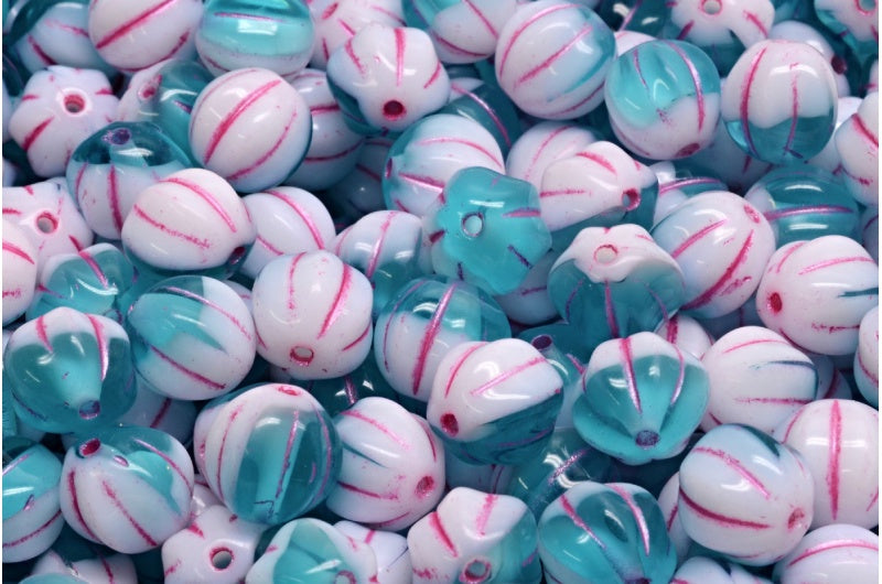 メロンビーズ、白透明アクアピンクライン(02010-60040-54321)、ガラス、チェコ共和国