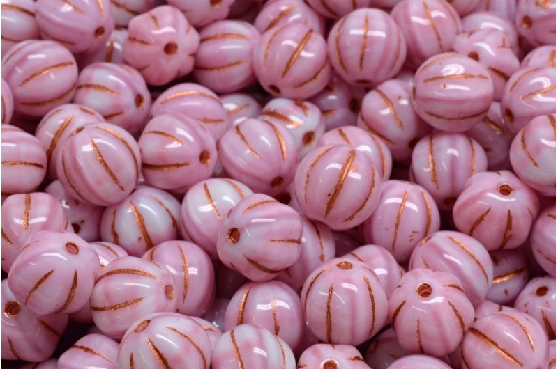 メロンビーズ、ピンク銅線入り(07724-54319)、ガラス、チェコ共和国