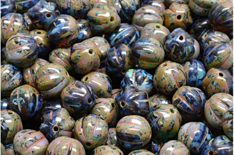 メロンビーズ、透明オレンジ透明アクアトラバーチン(10080-60040-86800)、ガラス、チェコ共和国