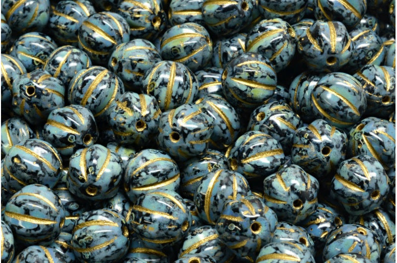 メロンビーズ、ブラックトラバーチン、ゴールドライン(23980-86800-54302)、ガラス、チェコ共和国