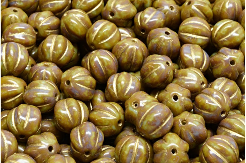 メロンビーズ、ライトブルートラバーチン、ゴールドライン(33000-86800-54302)、ガラス、チェコ共和国