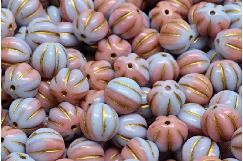 メロンビーズ、不透明ライラックブルー、金線入り(37714-54302)、ガラス、チェコ共和国