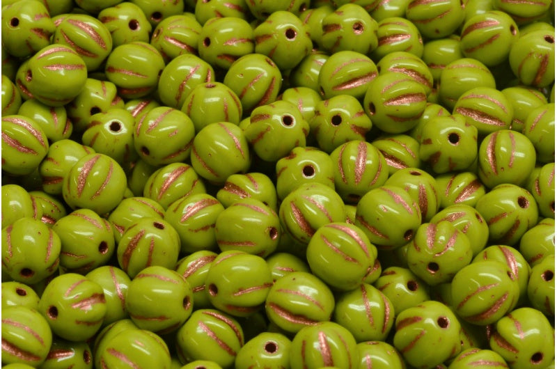メロンビーズ、不透明グリーン銅線入り(53410-54307)、ガラス、チェコ共和国