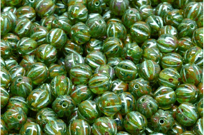 メロンビーズ、透明アクアトラバーチン 54322 (60200-86800-54322)、ガラス、チェコ共和国