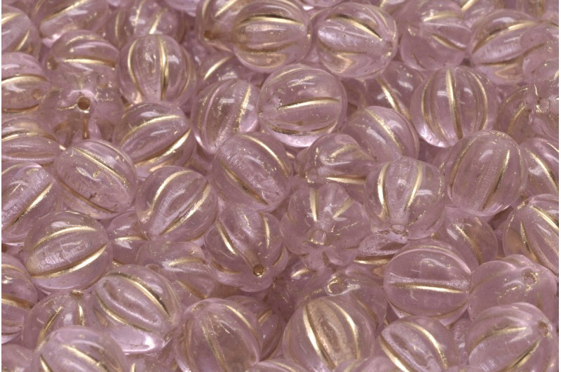 メロンビーズ、透明ピンクゴールドライン(70200-54302)、ガラス、チェコ共和国