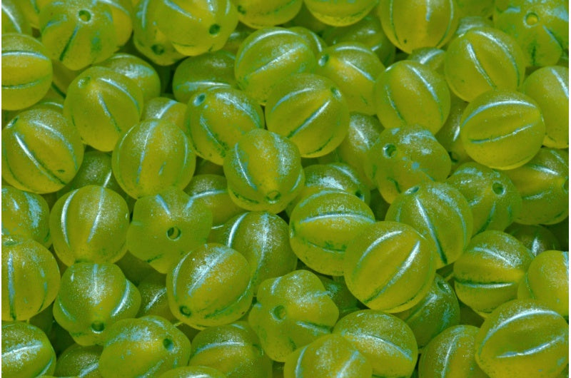 メロンビーズ、透明イエローマットライトブルーライン(80020-84100-54308)、ガラス、チェコ共和国