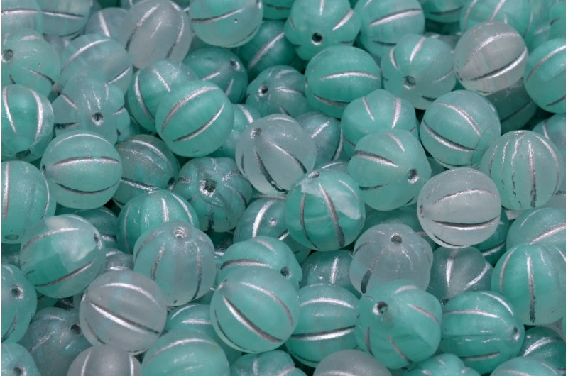 メロンビーズ、R0613 マットシルバーライン(R0613-84100-54301)、ガラス、チェコ共和国