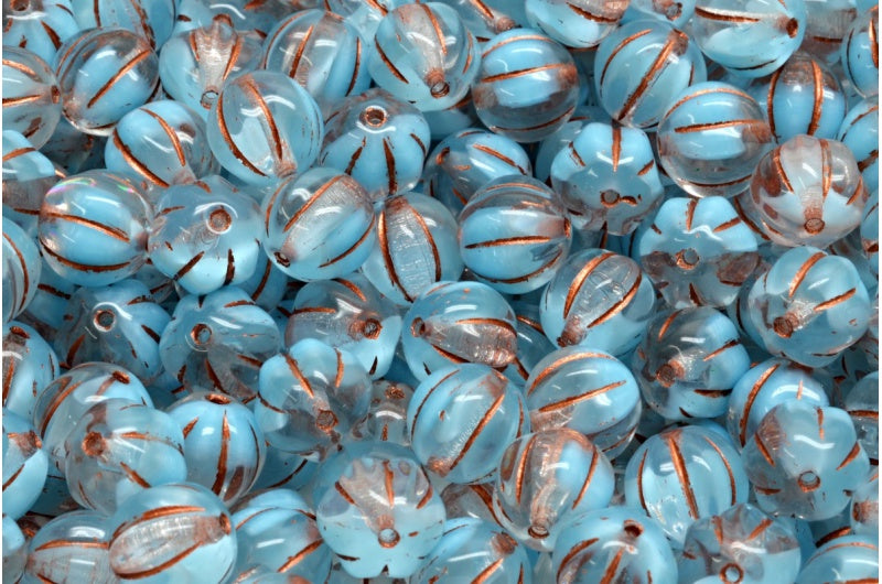 メロンビーズ、青銅線入り(R0641-54319)、ガラス、チェコ共和国