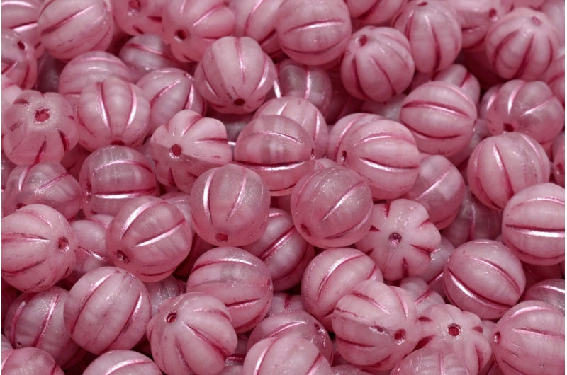 メロンビーズ、ピンクマットピンクライン(R0742-84100-54321)、ガラス、チェコ共和国