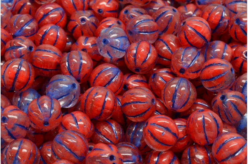 メロンビーズ、R0932 ブルーライン(R0932-54309)、ガラス、チェコ共和国