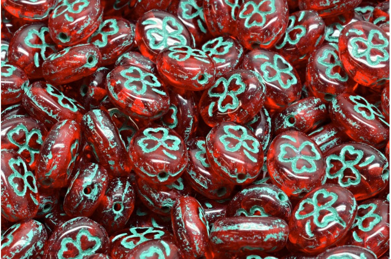 シャムロックオーバルビーズ、ライトサイアムティールライン(90070-54316)、ガラス、チェコ共和国