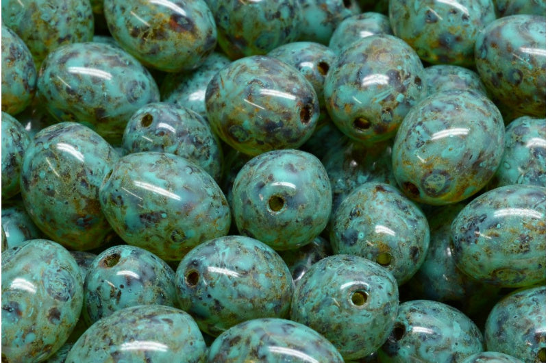 オリーブビーズ、クリスタルトラバーチンターコイズスポット(00030-86800-33310)、ガラス、チェコ共和国