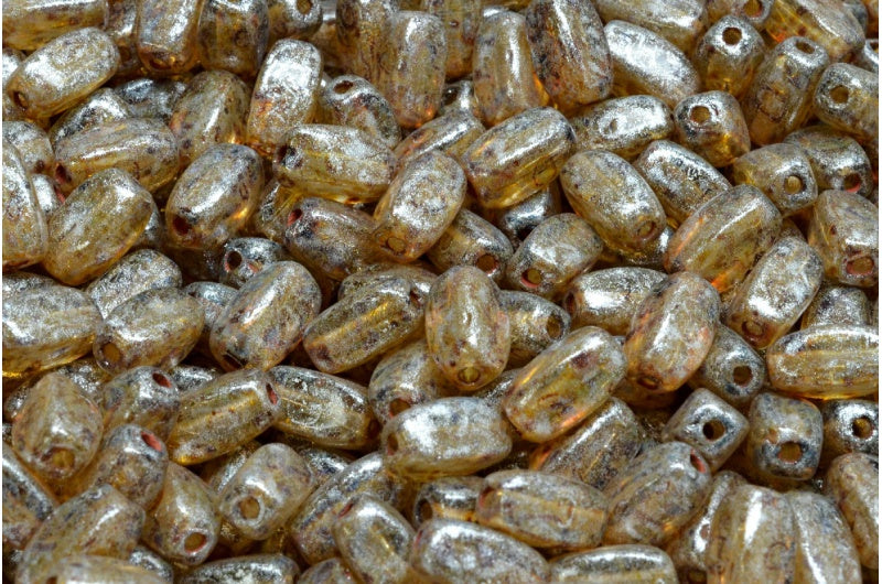 オリーブビーズ、クリスタルトラバーチンシルバーグレー(00030-86800-34301)、ガラス、チェコ共和国
