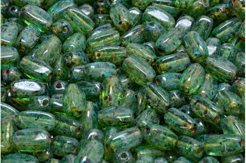 オリーブビーズ、クリスタルトラバーチンライトターコイズ(00030-86800-34309)、ガラス、チェコ共和国