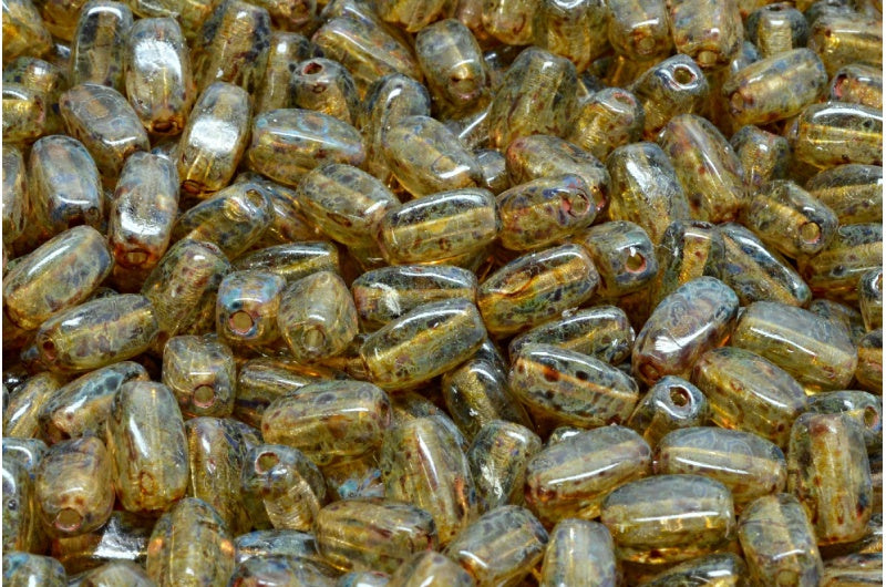 オリーブビーズ、クリスタルトラバーチンライトグレー(00030-86800-34311)、ガラス、チェコ共和国