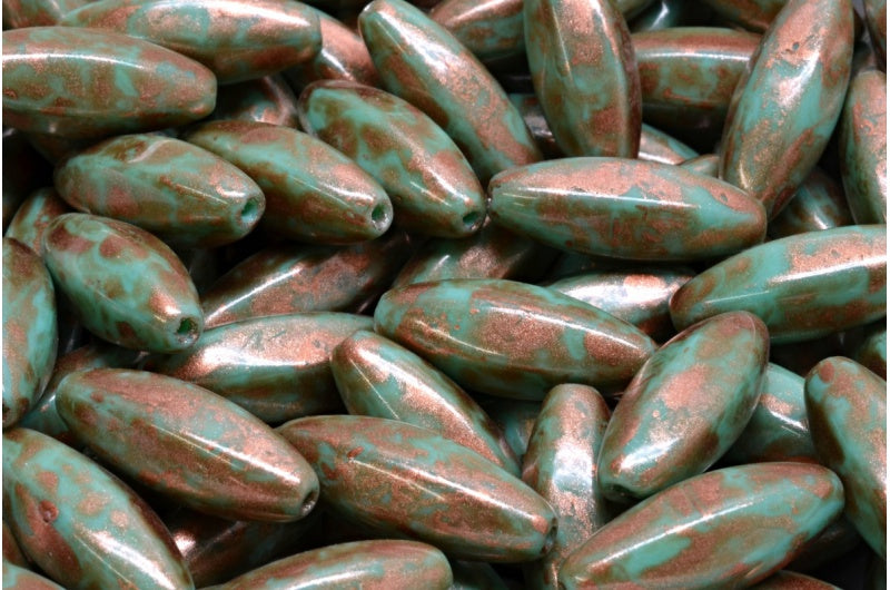 剥がしたオリーブビーズ、ターコイズ 86750 (63130-86750)、ガラス、チェコ共和国