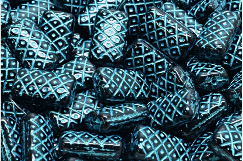 グリッドクッションビーズ 13x07mm、ブラック 43811 (23980-43811)、ガラス、チェコ共和国